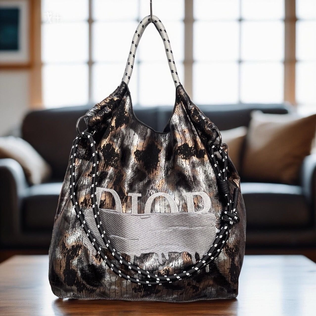 ロゴデザイン ナイロン2wayバッグ(ブラックパターン/キャメル)